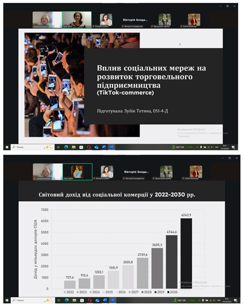 Зубік Т. у доповіді «Вплив соціальних мереж на розвиток торговельного підприємництва» проаналізувала роль цифрового маркетингу та онлайн-комунікацій у просуванні товарів і брендів.