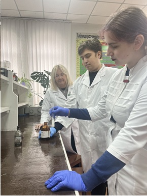 Темою заняття стало визначення якісного складу харчових продуктів — одного з ключових етапів аналітичного контролю у харчовій промисловості. Метою практикуму було ознайомлення студентів із сучасними хімічними методами ідентифікації основних компонентів харчових систем. Заняття було присвячене визначенню якісного складу харчових продуктів методами аналітичної хімії — зокрема білків, жирів, вуглеводів та органічних кислот. Під час хімічного практикуму студенти досліджували натуральні зразки харчових продуктів, спостерігали хімічні реакції, що дозволяють встановити наявність окремих компонентів, та вчилися робити первинні висновки щодо їх складу і якості.