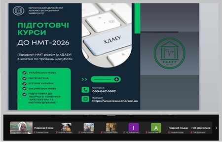 7 листопада було проведено он-лайн зустріч доцента кафедри лісового та садово-паркового господарства Тетяни БОЙКО та асистента Олени МОТУЗНОЇ з учнями 10 та 11 класів Херсонського ліцею №57. На зустрічі були підняті питання вибору майбутньої професії херсонської молоді, особливості вступної кампанії 2025 року, питання грантової державної підтримки здобувачів та ознайомлення школярів зі спеціальностями університету.