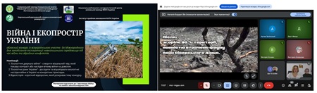 До заходу активно долучилася Вікторія Алмашова, к.с.-г.н., доцентка кафедри екології та сталого розвитку імені професора Ю.В. Пилипенка, яка наголосила на значущості повоєнного відновлення порушених земель півдня України з використанням методу фіторемедіації ґрунтів. Змістовною та цінною стала доповідь студентки 4 курсу спеціальності 101 «Екологія» Вікторії Восколович, в якій було акцентовано увагу впливу війни на довкілля Херсонщини.