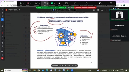 Стейкголдери як зовнішні, так і внутрішні обговорювали можливості удосконалення та формування навичків, компетентностей у здобувачів вищої освіти з акцентом на виробничі кейси, практичну підготовку. Гаранти освітніх програм підкреслили про актуальність та важливість приділенню уваги науково-дослідній та освітній компонентам через програми стажувань, підвищення кваліфікацій, вебінарів, науково-практичних конференцій, семінарів та інших заходів. Також розглянули можливість організації заходу з вектором розвитку соціальних навичків у здобувачів вищої освіти. Посилення організацій форматів гостьових лекцій, дискусій з запрошеними гостями та учасниками реалізації освітнього процесу ОП 207 Водні біоресурси та аквакультура. Підсилення соціальної складової також було обрано як один із векторів розвитку ОП. Обговорили цифровізації робочих процесів – документообігу з метою оптимізацію корисного часу.
