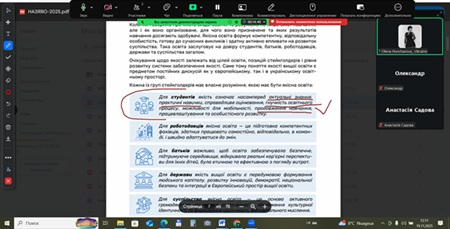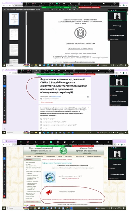 Магістри внесли до обговорення вектори та пропозиції підсилення науково-дослідної складової ОП в умовах сучасного стану нашої країни. Розглянули шляхи інтернаціоналізації ОП Водні біоресурси та аквакультура. Та загалом «функціонально-активну» роль студента у «житті» ЗВО.