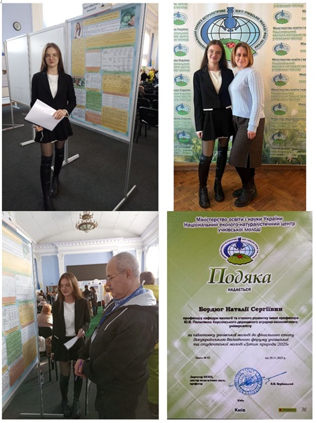 18-20 листопада 2025 р. в Національному еколого-натуралістичному центрі учнівської молоді МОН України відбувся Всеукраїнський біологічний форум учнівської та студентської молоді «Дотик природи». У секція «Енергозберігаючі технології» перемогу (І місце) здобула Світлана Сич, вихованка КЗПО «Обласний еколого-натуралістичний центр» ЖОР, учениця Черняхівського ліцею №1 Черняхівської селищної ради, яка репрезентувала дослідження на тему «Ефективні способи вирощування пізньостиглої капусти агресор-F1 у зоні Полісся за умов глобальних змін клімату». Науковим керівником роботи виступила Наталія Бордюг, докторка педагогічних наук, професорка кафедри екології та сталого розвитку імені професора Ю.В. Пилипенка ХДАЕУ.