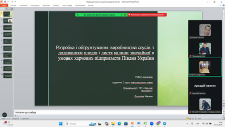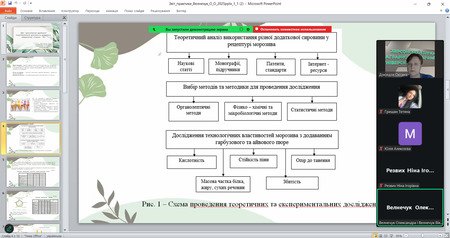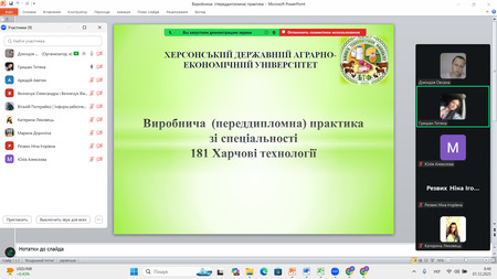 1 грудня 2025 року в онлайн-форматі відбувся захист звітів із виробничої (переддипломної) практики здобувачів другого (магістерського) рівня другого року навчання за освітньо-професійною програмою «Харчові технології» спеціальності 181 «Харчові технології» біолого-технологічного факультету.