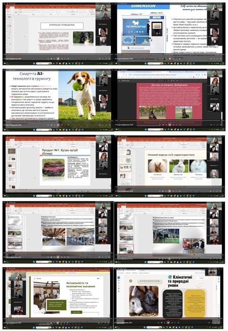 У ході конференції було представлено доповіді здобувачів вищої освіти першого (бакалаврського) рівня ОП Технологія виробництва і переробки продукції тваринництва, присвячені актуальним питанням сучасного тваринництва, зокрема розвитку кінології та грумінгу собак, впровадженню інноваційних підходів у догляді за тваринами, сучасним технологіям у скотарстві, кролівництві та нутріївництві. Значну увагу було приділено цифровізації галузі, автоматизованим системам моніторингу стану тварин, використанню безпілотних літальних апаратів у тваринництві, а також європейським стандартам утримання тварин і питанням етичного виробництва.