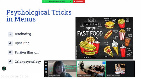 Після теоретичної частини старшокласники активно включилися в інтерактивні завдання. Вони працювали в групах, аналізували зразки меню та визначали, які саме маркетингові прийоми там використані. Кожна група виявила неймовірну креативність, розробивши назву та слоган, тип кухні (від бургерів до суші-to-go), спеціальну пропозицію чи фірмову страву (наприклад, «Студентське комбо»), застосувавши обов’язковий маркетинговий прийом. Учні презентували свої бізнес-ідеї та рекламні стратегії англійською мовою, спробувавши себе в ролі справжніх маркетологів та аналітиків.