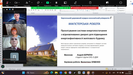 19 грудня 2025 року на кафедрі гідротехнічного будівництва, водної та електричної інженерії Херсонського державного аграрно-економічного університету відбувся захист магістерських робіт здобувачів спеціальності 141 «Електроенергетика, електротехніка та електромеханіка».