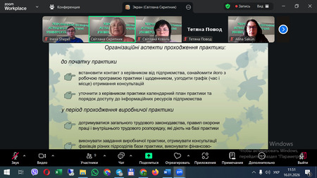 З програмами комплексної виробничої практики за відповідними спеціальностями здобувачів ознайомили професор Світлана Скрипник та доцент Аліна Сакун. Активне обговорення й запитання від магістрів засвідчили їхню зацікавленість і готовність до відповідального проходження практики»