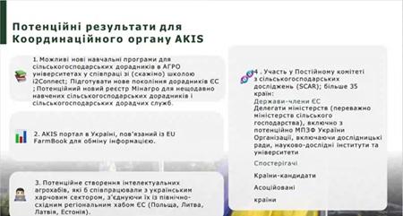 Директор Навчально-наукового центру «Інститут післядипломної освіти та дорадництва» Олександр АВЕРЧЕВ і головний спеціаліст з перепідготовки Марія НІКІТЕНКО — взяли участь у заході, присвяченому створенню єдиної національної платформи аграрних знань та інновацій AKIS (Agricultural Knowledge and Innovation System).