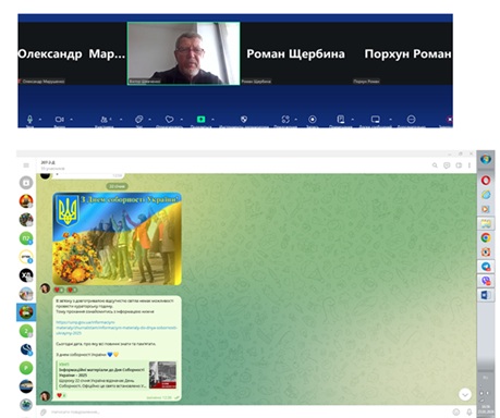На кафедрі водних біоресурсів та аквакультури за ОПП 207 (Н5) Водні біоресурси та аквакультура серед здобувачів вищої освіти викладачами було реалізовано ряд таких тематичних заходів. Враховуючи сучасні реалії використовували та адаптувались під обставини та технічні можливості кожного. Втім, кожний учасник знайшов спосіб проявити шану, виразити власну позицію щодо важливості об’єднання навколо української державності й ідентичності! Спілкувались, звертали увагу щодо «єдності, неподільності усіх територій України, про духовну єдність українців, які проживають на території України, а також єдність усіх громадян України незалежно від національності та віросповідання, побудову процвітаючої демократичної національної держави (ст.6 Закону України “Про основні засади державної політики у сфері утвердження української національної та громадянської ідентичності”)».