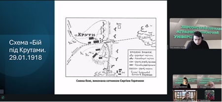 Напередодні знакової для українського державотворення дати у Херсонському державному аграрно-економічному університеті відбувся тематичний захід національно-патріотичного спрямування, присвячений Дню пам'яті Героїв Крут. До онлайн-зустрічі долучилися здобувачі вищої освіти різних спеціальностей, а спікером виступив доцент кафедри соціальних та поведінкових дисциплін Михайло Орлик.