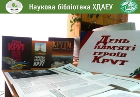 У читальній залі Наукової бібліотеки ХДАЕУ представлено книжкову виставку, присвячену Дню пам’яті героїв Крут. Вона знайомить відвідувачів із історичними джерелами, дослідженнями та художніми творами, що розповідають про подвиг української молоді у січні 1918 року. Виставка покликана не лише зберегти пам’ять про трагічні події, а й надихнути сучасне покоління на усвідомлення цінності свободи та державності.