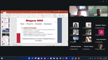 У виступі було розкрито сучасні підходи до управлінської комунікації, зокрема моделі структурованого зворотного зв’язку, інструменти конструктивного діалогу та принципи усвідомленого реагування замість емоційної реактивності. Особливу увагу спікер приділив ролі внутрішнього стану керівника, наголосивши, що якість управлінських рішень і атмосфера в команді безпосередньо залежать від рівня саморегуляції та емоційної зрілості лідера. Було продемонстровано, як практики усвідомленості, чітке формулювання фактів, фокус на розвитку замість оцінювання та орієнтація на майбутні кроки допомагають знижувати конфліктність і підвищувати продуктивність.