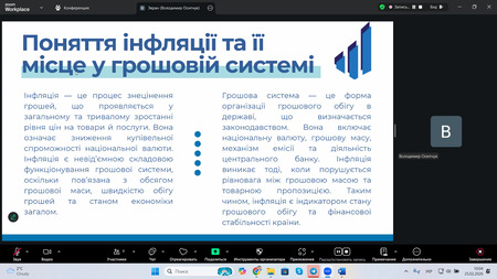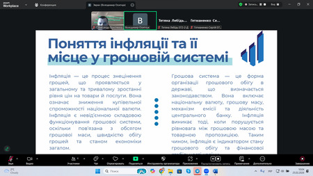 До зустрічі були залучені здобувачі першого (бакалаврського) рівня вищої освіти спеціальностей D1 Облік і оподаткування та D2 Фінанси, банківська справа, страхування та фондовий ринок, які презентували цікаві та актуальні доповіді: