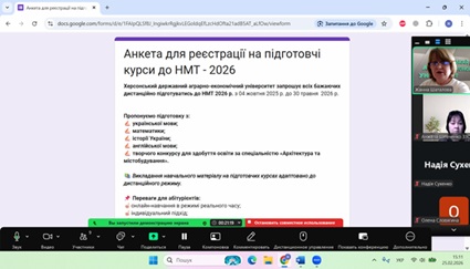 Старший викладач Жанна ШАТАЛОВА надала учням інформацію про початок роботи підготовчих експрес-курсів до складання НМТ-2026. Показала на сайті де можна знайти детальну інформацію про курси та як заповнити "Анкету для реєстрації на підготовчі курси до НМТ – 2026".