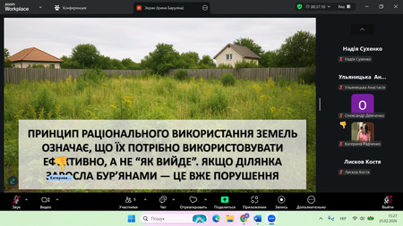 Ірина БАРУЛІНА, доктор філософії, старший викладач кафедри, залучила учнів до інтерактивної гри «Норм чи стрьом». Учні із зацікавленням долучилися до гри, та активно взаємодіяли з викладачем. Внаслідок цього, вони дізналися про цільове призначення і про різні нюанси використання земельних ділянок, в ігровій формі.