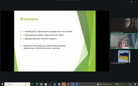 Цікавою була також доповідь Геріни Кіри та Єгора Рибакова, які досліджували тему «Ризики стартапів у сфері електронної комерції». У виступі здобувачі проаналізували основні проблеми, що виникають під час розвитку онлайн-бізнесу, зокрема труднощі логістики, необхідність формування довіри клієнтів, високий рівень конкуренції на цифрових платформах, а також залежність підприємців від онлайн-маркетплейсів та алгоритмів цифрових сервісів.