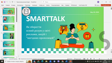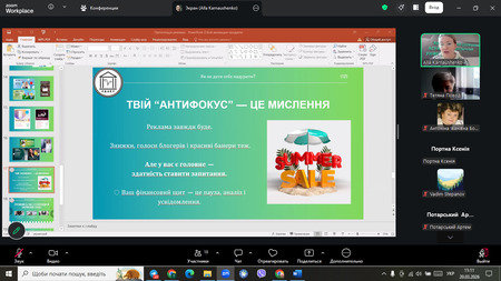 Школярі також дізналися, як розпізнавати маніпулятивні елементи в рекламі: завищені знижки, обмежені в часі пропозиції, створення штучного дефіциту та використання емоційних тригерів. У форматі інтерактивного обговорення учасники аналізували приклади рекламних оголошень і визначали приховані маркетингові прийоми.