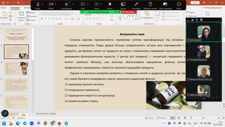 У ході засідання учасники ознайомилися з актуальними науковими напрацюваннями щодо технології виготовлення комбучі — ферментованого напою, отриманого за участі симбіотичної культури мікроорганізмів. Було розглянуто особливості її мікробіологічного складу, процеси біохімічних перетворень під час ферментації та їх вплив на харчову цінність, смакові якості й вміст біологічно активних сполук.
