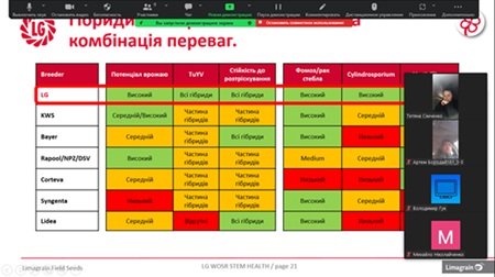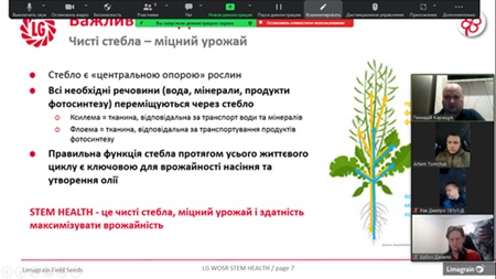Під час лекції були розглянуті основні хвороби стебла, їх симптоми, умови, що сприяють розвитку, а також ефективні методи боротьби від компанії Лімагрейн, включаючи генетичні інновації.