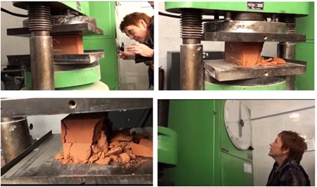 Здобувачі виконали лабораторну роботу по визначенню міцності керамічної цегли на стиск та встановлення її марки. При цьому присутні могли прослідкувати всі нюанси виконання роботи: від підготовки цегли до випробування, із заміром її площі, встановлення її до гідравлічного преса, безпосереднього стискання до руйнування під певним тиском, що фіксували за показанням контрольної стрілки вимірювача зусилля преса. Всі показники здобувачі фіксували і заносили у лабораторний журнал.