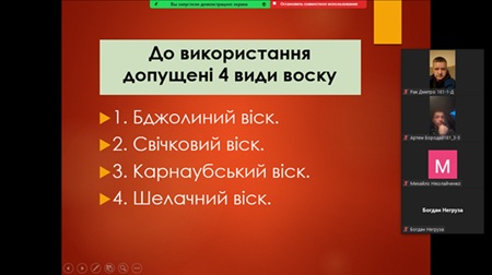 Особливу зацікавленість у здобувачів вищої освіти викликало питання використання воску для обробки плодів яблук перед зберіганням, який створює фізичний бар’єр, що зменшує втрати маси яблук та запобігає проникненню бактерій під час довготривалого зберігання.