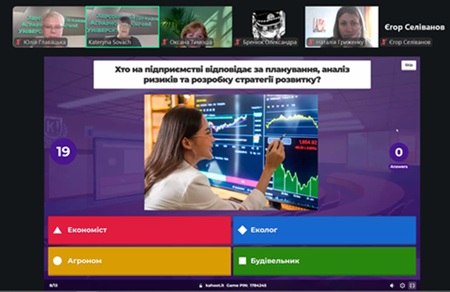 Екскурс у життя ХДАЕУ та його спеціальностей було проведено українською, а драйвовий інтерактив на платформі Kahoot! – англійською мовою. Такий ігровий формат не лише додав зустрічі азарту, а й допоміг абітурієнтам краще запам’ятати знайомство з університетом.