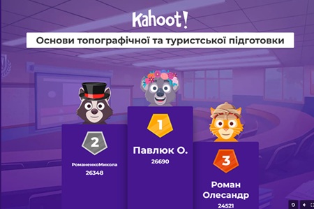 Крім того, топографічна грамотність сприяє розвитку відповідальності та впевненості у власних силах, що особливо важливо для молоді в умовах невизначеності та стресу. Завдяки інтерактивному формату Kahoot, учасники отримали можливість одразу бачити результати, порівнювати свої досягнення з одногрупниками та отримувати миттєвий зворотний зв’язок.