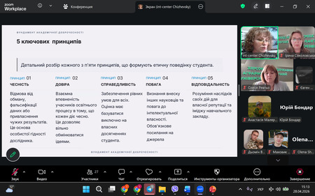 Зустріч пройшла у форматі жвавого обговорення актуальних питань академічної доброчесності. Учасники не лише ознайомилися з основними принципами створення наукового тексту, а й детально розглянули правила цитування, оформлення бібліографічного опису джерел, використання інтернет-ресурсів, а також такі важливі поняття, як плагіат і коректне перефразування.