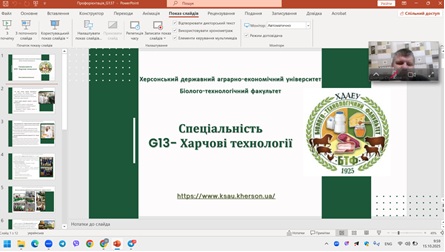 15 жовтня 2025 року викладачі кафедри харчових технологій біолого-технологічного факультету ХДАЕУ провели профорієнтаційну онлайн зустріч з учнями 10–11 класів Херсонської загальноосвітньої школи І-ІІІ ст. № 36 Херсонської міської ради.