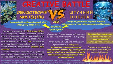 Детальніше...Молодіжний конкурс: CREATIVE BATTLE «Твоя творчість VS Штучний інтелект»