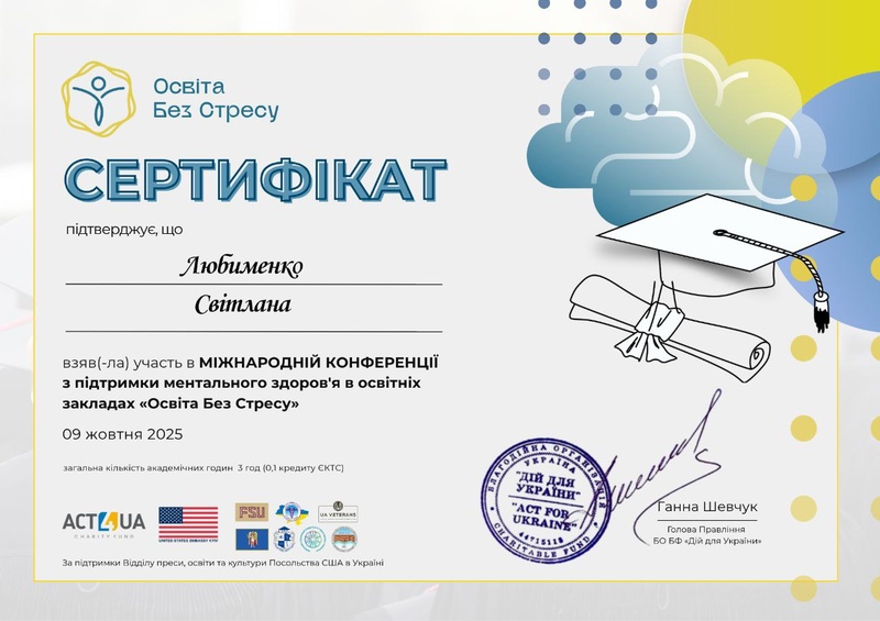 9 жовтня 2025 року відбулася Міжнародна конференція «Освіта Без Стресу», присвячена підтримці ментального здоров’я в освітніх закладах. Захід об’єднав освітян, психологів, дослідників та представників громадських організацій з різних країн, які прагнуть зробити навчання більш безпечним, комфортним і психологічно здоровим для учнів та студентів.