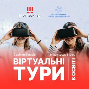 ГО «Прогресильні» запрошують освітян на серію вебінарів «Віртуальні тури в освіті» організованих у партнерстві з міжнародним проєктом «Ukrainian-German Teaching Network for a Digital Transformation of Environmental Education (DAAD)».