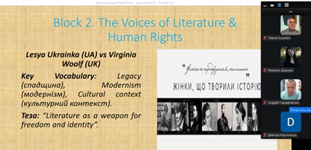The Voices of Literature & Human Rights (Голоси свободи): у фокусі опинилися Леся Українка, яка інтегрувала українську літературу в європейський контекст, та Вірджинія Вульф, ключова фігура британського модернізму. Здобувачі дискутували про те, як художнє слово стає інструментом боротьби за права людини.