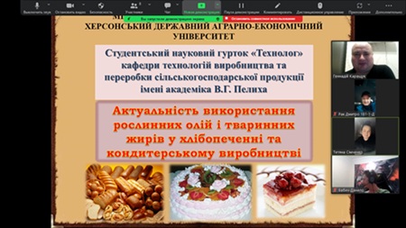 Засідання студентського наукового гуртка «Технолог» на тему: «Актуальність використання рослинних олій і тваринних жирів у хлібопеченні та кондитерському виробництві»