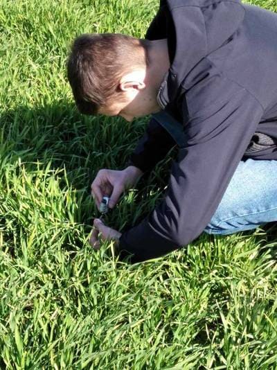 Шеремет Сергій, студент 3 курсу агрономічного факультету, та Гончаров Віталій, студент 1 курсу, під керівництвом кандидата с.-г. наук, доцента Макухи Ольги Володимирівни проводять фітосанітарний моніторинг шкідників з метою уточнення стану їх популяції після зимівлі та визначення потенційної загрози посівам озимих зернових культур і багаторічним насадженням.