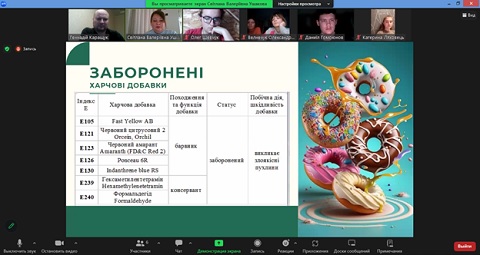 Керівник студентського наукового гуртка, кандидат с.-г. наук, старший викладач Ушакова С.В. розповіла про класифікацію та технологічне значення харчових добавок, розглянули питання поєднання добавок між собою та вплив технологічних факторів на них у процесі виробництва продуктів харчування.