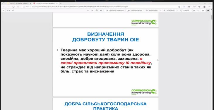 Цікаву доповідь про альтернативні умови утримання тварин із дотриманням санітарних правил та забезпеченням тваринам добробуту і благополуччя, відповідно до міжнародних стандартів підготувала здобувач другого року навчання  Постова Поліна
