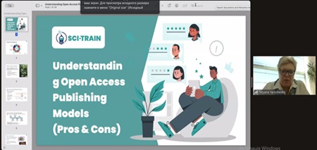 25 вересня до тижня Міжнародного відкритого доступу у науці в.о. директора Наукової бібліотеки ХДАЕУ Світлана Любименко взяла участь у міжнародному вебінарі «Understanding Open Access Publishing Models (Pros & Cons)», організованому за ініціативи Державної науково-технічної бібліотеки України (DNTB).
