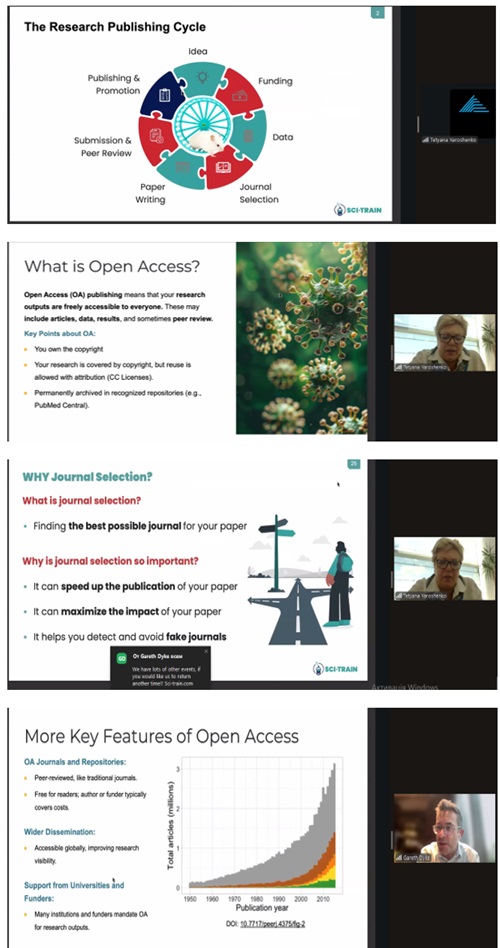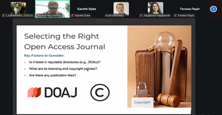 Спікером заходу виступив доктор Gareth Dyka - експерт у сфері наукових комунікацій та відкритого доступу. Учасники вебінару мали змогу ознайомитися з перевагами та викликами різних моделей відкритого доступу, обговорити сучасні тенденції у науковому видавництві та отримати практичні поради щодо публікацій у відкритих журналах.