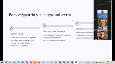 Онлайн-зустріч об’єднала студентів різних курсів, які змогли долучитися до обговорення історичних витоків свята та його значення сьогодні. Учасники дізналися про зв’язок цих дат із Покровою Пресвятої Богородиці та традиціями українського козацтва, а також про роль козаків у формуванні державності України.