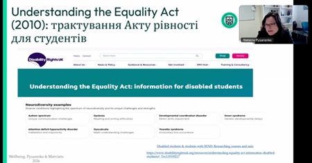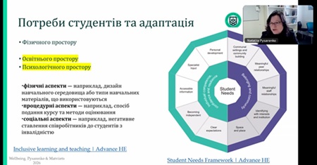 Під час вебінару було представлено практичний досвід британських університетів щодо організації формальних і неформальних механізмів підтримки студентів, адаптації навчальних процесів до потреб здобувачів з особливими освітніми потребами та інтеграції принципів турботи у систему забезпечення якості освіти.