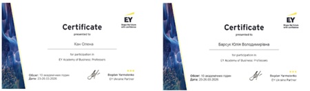 23 – 26 березня 2026 року представники навчально-методичного відділу взяли участь у міжнародному освітньому проєкті EY Academy of Business: Professors, що об’єднує академічну спільноту та представників бізнесу з метою підвищення якості освіти та адаптації навчальних програм до сучасних вимог ринку праці. Програма заходу охопила актуальні теми, пов’язані з розвитком професійного мислення, фінансами стартапів, аналітикою даних і візуалізацією.