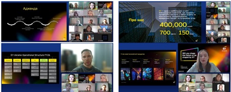У межах проєкту відбулася зустріч, присвячена можливостям співпраці з компанією Ernst & Young (EY) – однією з провідних міжнародних організацій у сфері аудиту, консалтингу та податкових послуг. Під час вебінару учасники ознайомилися з цілями та форматом проєкту, дізналися про можливості інтеграції практичного досвіду EY у навчальні курси, формати гостьових лекцій і спільних освітніх ініціатив, а також перспективи довгострокового партнерства між університетами та бізнесом. Особливу увагу було приділено значенню такої співпраці для підвищення якості освітніх програм і формування конкурентоспроможності випускників.