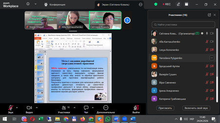 Доцент кафедри підприємництва, обліку та фінансів Тетяна Повод наголосила на важливості дотримання термінів практики, відповідального ставлення до завдань та якісного виконання всіх вимог програми. Детальні роз’яснення щодо організації практики, оформлення звітної документації, порядку проходження та критеріїв оцінювання надала відповідальна за практику від кафедри доцент Світлана Коваль. Учасники заходу відзначили, що виробнича переддипломна практика є важливою складовою підготовки майбутніх фахівців, адже дозволяє поєднати теоретичні знання з реальним професійним досвідом.