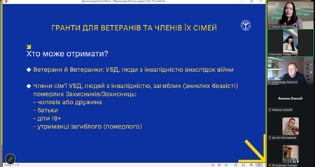Окремий акцент було зроблено на можливостях програми для ветеранів і ветеранок, а також членів їхніх родин. Учасникам представили особливі умови участі, додаткові інструменти підтримки та роз’яснення щодо процедур, адаптованих до цієї категорії. У цьому контексті також було відзначено, що в ХДАЕУ функціонує Центр ветеранського розвитку, який забезпечує консультаційну та освітню підтримку, сприяючи професійній адаптації та реалізації підприємницьких ініціатив.