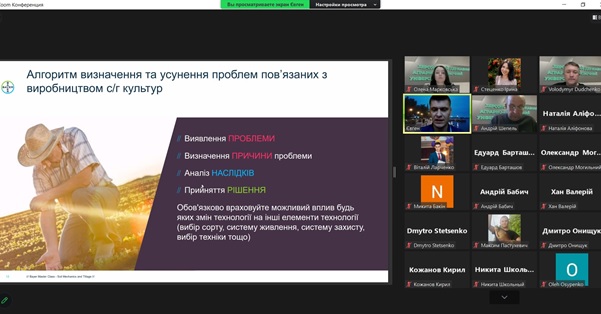 Лектор підготував доповідь на актуальну тему «Особливості захисту посівів озимих зернових культур від шкідливих організмів в осінній період», під час якої були розглянуті питання реалізації продуктивного потенціалу пшениці озимої, ячменю озимого та складові їх врожайності, алгоритми визначення та усунення проблем, що можуть виникати за виконання таких операцій як підготовка ґрунту до сівби, протруювання насіння, сівба, осіннє підживлення.
