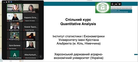 9 жовтня розпочалась онлайн програма академічної мобільності для студентів ХДАЕУ, яка проходить у рамках спільного проєкту Херсонського державного аграрно-економічного університету та провідного навчального закладу Німеччини - Кільського університету ім. Хрістіана Альбрехта (м. Кіль, Німеччина). Співробітництво передбачає, зокрема, обмін досвідом освітньої та наукової діяльності між викладачами з метою створення навчального курсу з основ аналізу даних.