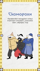 СКОМОРОХИ— східнослов'янські професійні мандрівні співці й актори (лицедії), учасники свят, обрядів, ігор. У поширюванні пісень та музичних інструментів скоморохи сповняли ролю посередників між селом і містом, поміж боярським двором і селянською хатою. Одні із скоморохів жили життям безпритульних мандрівців, інші ж, що стояли на службі вельмож, мали свої постійні осідки. Скоморохи («веселі люди») розважали народні маси співом, дотепами, музикою, танцями, драматичними сценками, акробатикою, дресированими тваринами, користуючись у виступах масками (машкари) та втягуючи у гру глядачів. |